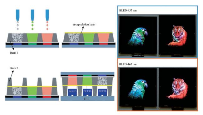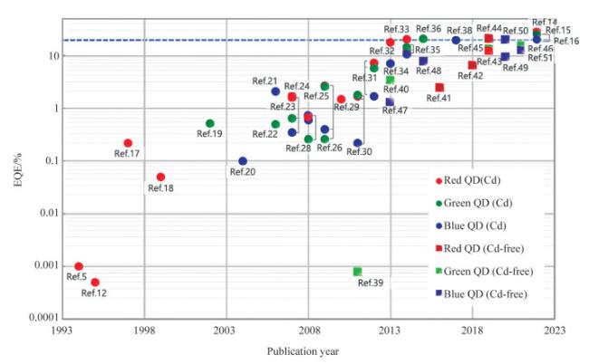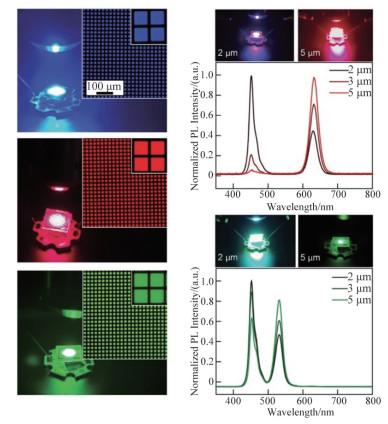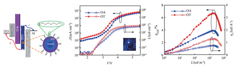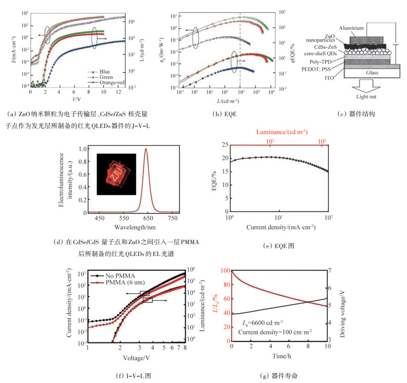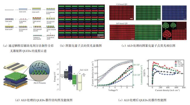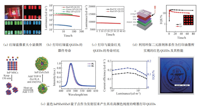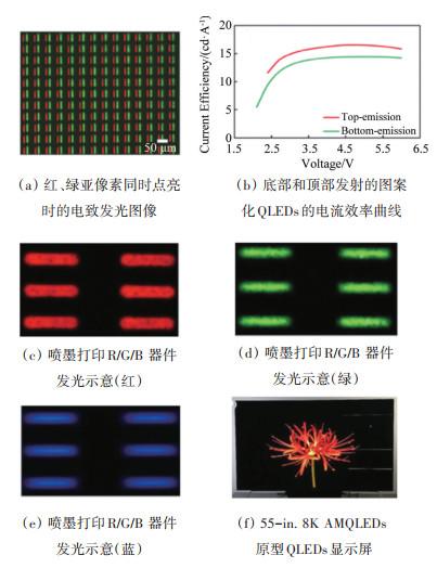 量子点以其高色纯度、高效率、可调光谱、广泛的光谱覆盖范围,以及低成本的溶液加工等诸多优点,成为新兴的显示领域材料。然而,无论是以光致发光为主的显示技术,还是发光二极管(QLEDs)显示技术,都面临着一些挑战,如器件寿命低、蓝光效率低、镉基量子点毒性、图案化困难等。总结了量子点的物理特性、量子点的种类、发光机制及在显示领域的研究进展,介绍了镉基量子点QLEDs的研究进展,报道了最新三基色QLEDs的发光亮度、效率和器件寿命。总结了量子点图案化技术,分析了不同技术的优势和劣势。为进一步提高量子点在显示领域的应用,科研人员需要不断开拓和创新,攻克量子点的应用难题,实现自发光量子点显示。