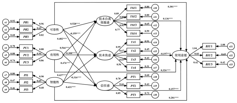 | 技术自我效能感(TSE) | TSE1 | 0.904 | 0.625 | 0.909 | 0.709 | 0.907 | |