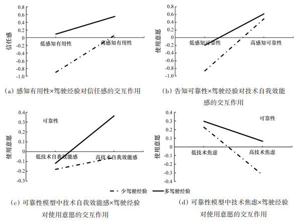 | 感知可靠性×驾驶经验 | 技术自我效能感 | β | 0.578 | 0.349 |