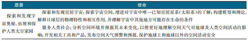 表1 2024太阳和空间物理十年调查愿景及使命 |