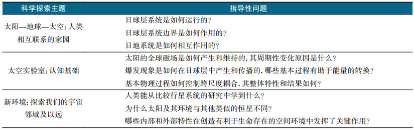 表2 2024太阳和空间物理十年调查科学探索主题及其指导性问题 |