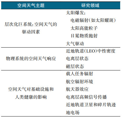 表3 2024太阳和空间物理十年调查中的空间天气主题及研究领域 |