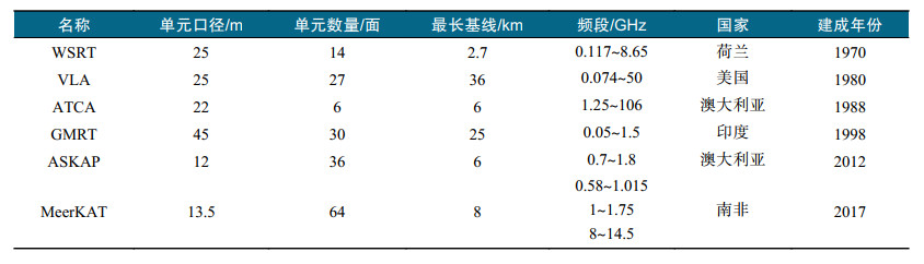 表1 世界上主要综合口径射电厘米波干涉阵列 |