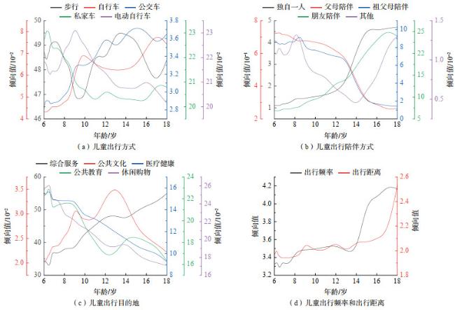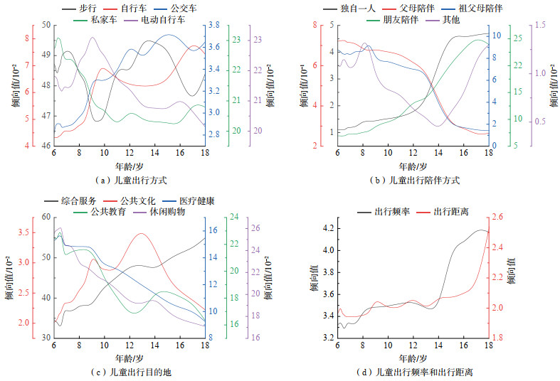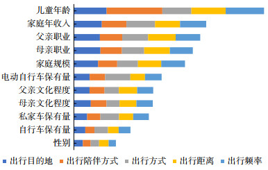 | 自变量/因变量 | 出行目的地占比/% | 出行陪伴方式占比/% | 出行方式占比/% | 出行距离占比/% | 出行频率占比/% |